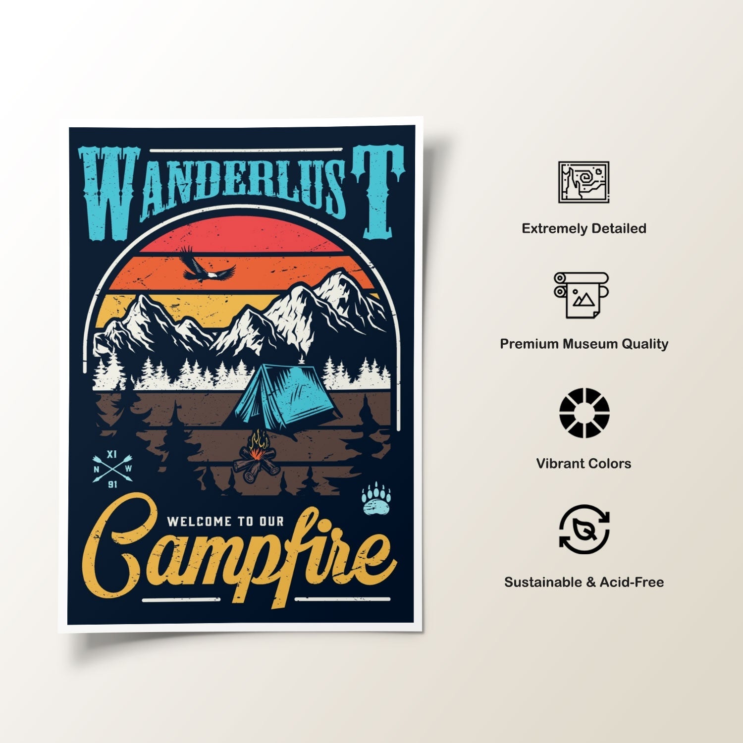 Campfire Travel Poster from the Travel Posters Collection is produced on Premium Museum Grade Poster and Hahnemuhle Fine Art Media. This beauiful Vintage Travel Poster Print product is made with matte finish and premium quality with vibrant colors. These Travel Posters Art Prints are produced with the most extreme shading precision and using the most advanced giclee printing technique in the world. We use the same standard that the various museums and art galleries use across the globe to recreate the Travel Posters Paintings Art Prints. These Travel Posters Paintings are perfect for you if you're a Travel Enthusiast or Frequent Traveler or if you want to add a Vintage or Quirky Look to your space. The vibrancy of colors and the unique detailing of every Travel Poster Print makes them the best in so many ways. This Travel Poster Print will add charm to any room in your home. This Travel Poster can be the perfect gift to your friends, colleagues or family as they sync in very well in your Bedroom, living room, lobby, Balcony, Bathroom etc.