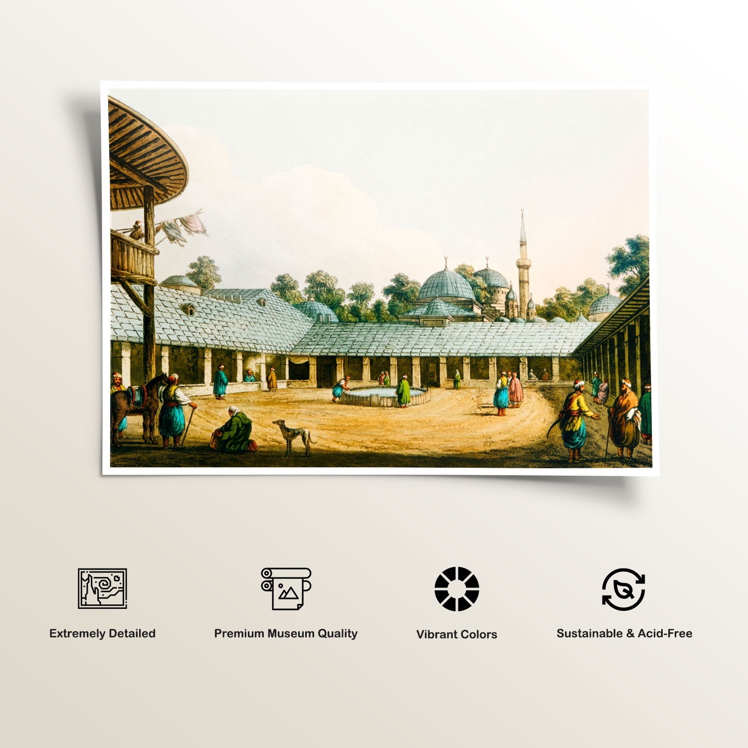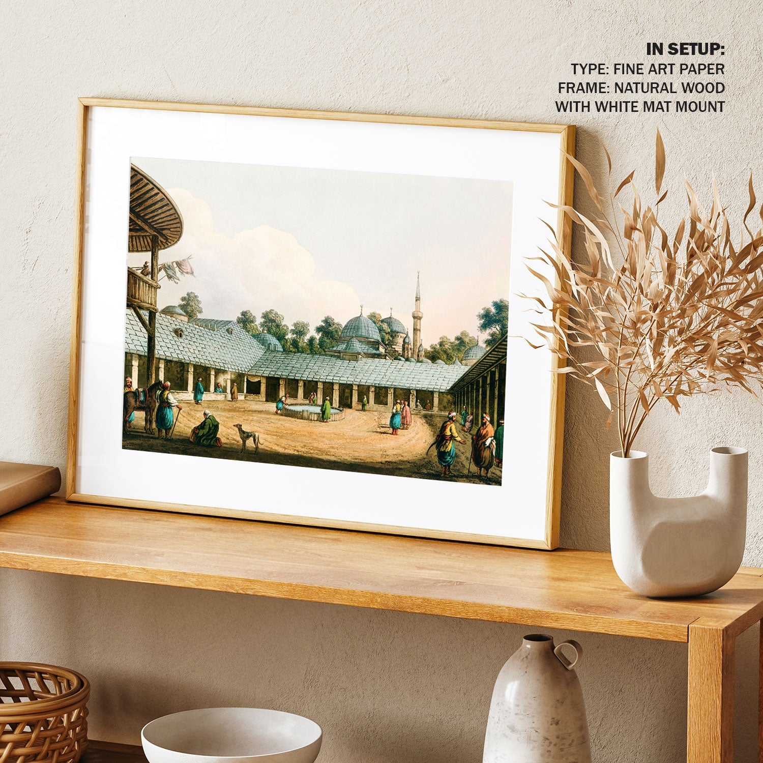 Caravansary in the Ottoman Dominions from the Turkish Art Paintings Collection is produced on Premium Museum Grade Canvas and Hahnemuhle Fine Art Media. This beauiful Turkish Painting Art Print product is made with matte finish and premium quality with vibrant colors. These Turkish Paintings Art Prints are produced with the most extreme shading precision and using the most advanced giclee printing technique in the world. We use the same standard that the various museums and art galleries use across the globe to recreate the Turkish Paintings Art Prints. These Turkish Paintings are perfect for you if you're a Turkish Culture Lover or if you want to add a Soothing, Refreshing, Subtle or Calm Look to your space. The vibrancy of colors and the unique detailing of every Turkish Painting Art Print makes them the best in so many ways. This Turkish Art Print will add charm to any room in your home. This Turkish Paintings Art Prints can be the perfect gift to your friends, colleagues or family as they sync in very well in your Bedroom, living room, lobby, Balcony, Bathroom etc.
