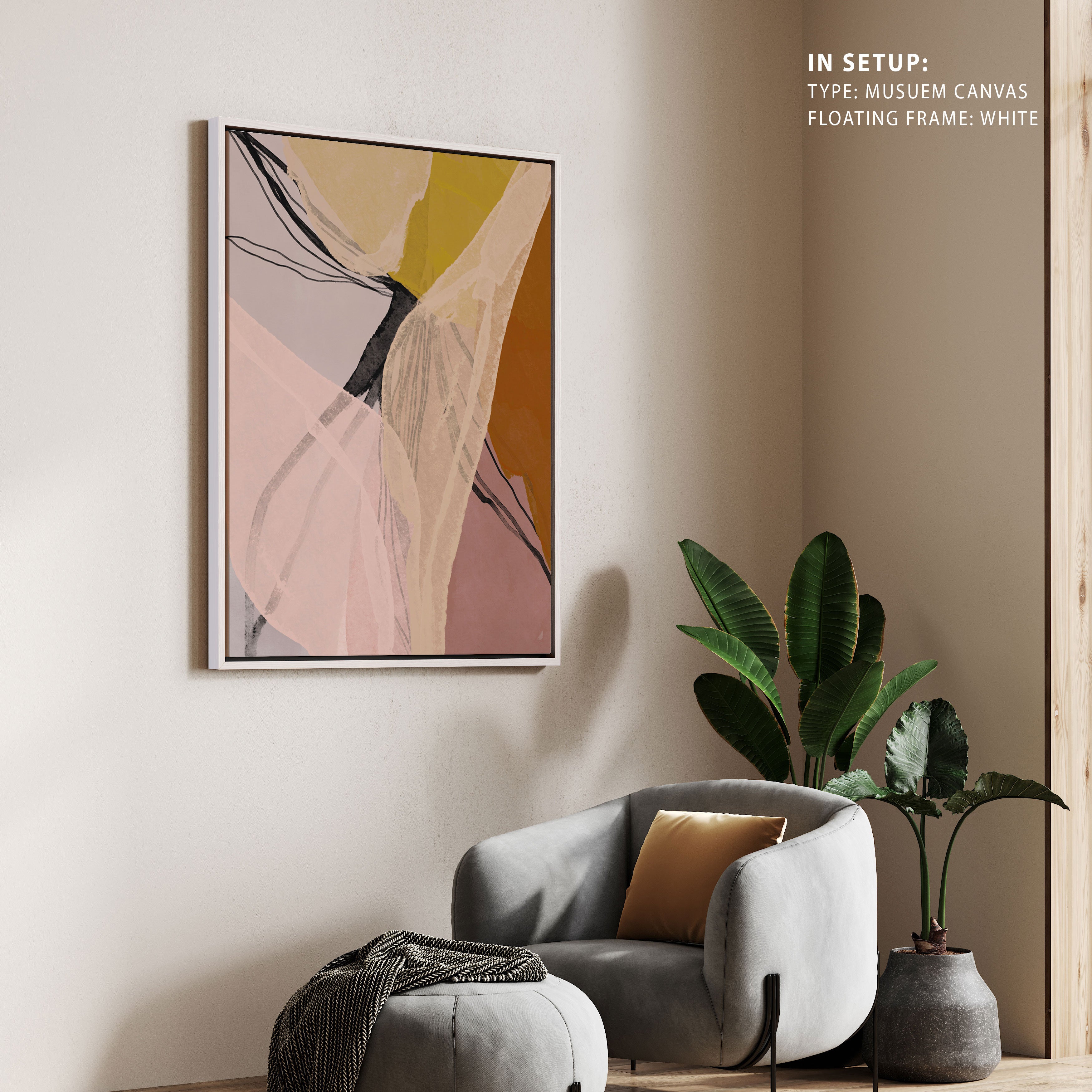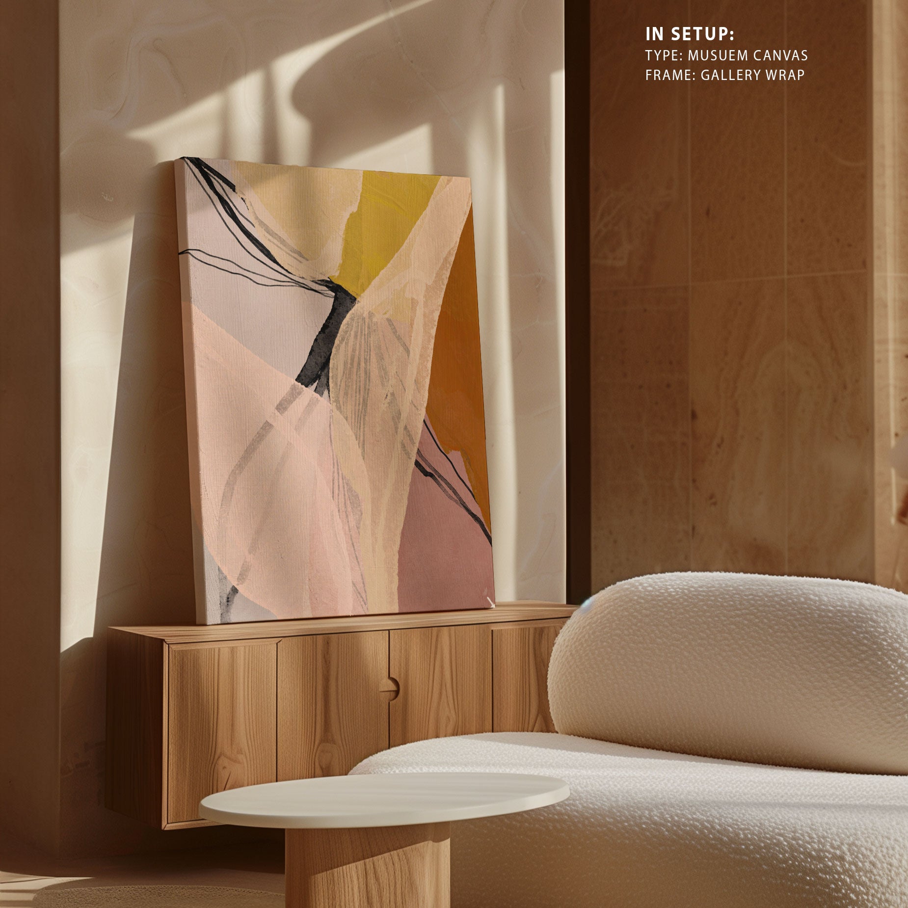 Whereas, there is no mat mount in canvas. And also in Minimalist Art, Set of 3 Collection. There is no Mat Mount.