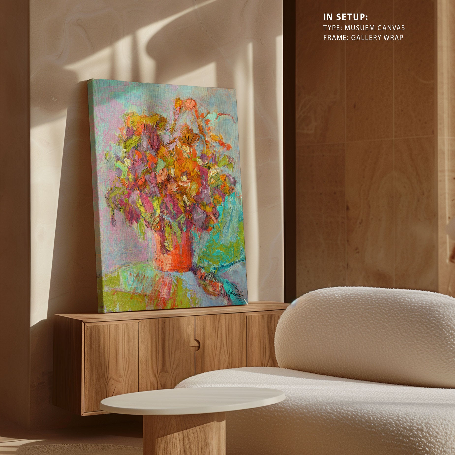 Museum Canvas Print is stretched on a wooden frame in such a way that it wraps around the sides of the stretcher. The sides of the canvas are prepared with white as natural white canvas for illustrations, pop-art and for Abstract, classical art canvas sides are stretched with the same painting as front of the canvas.