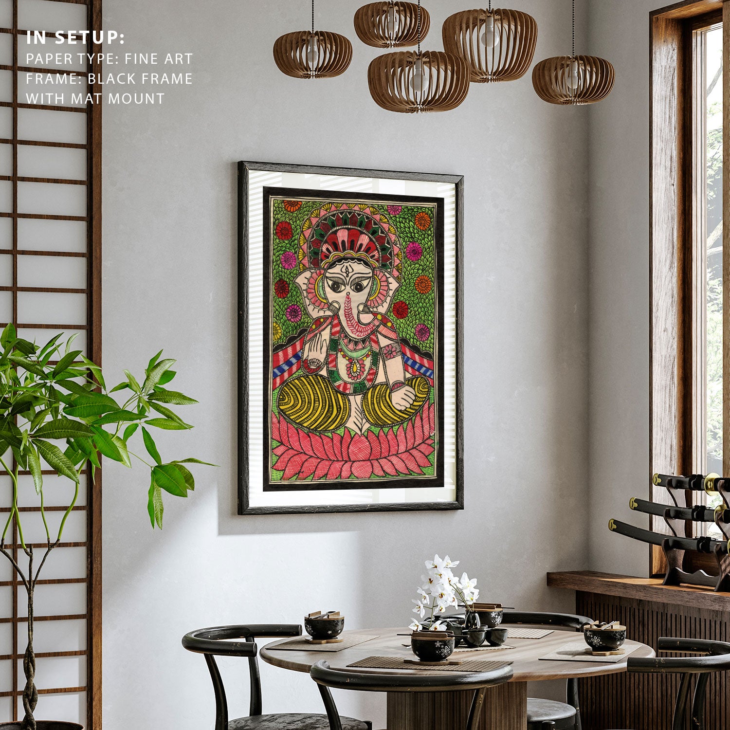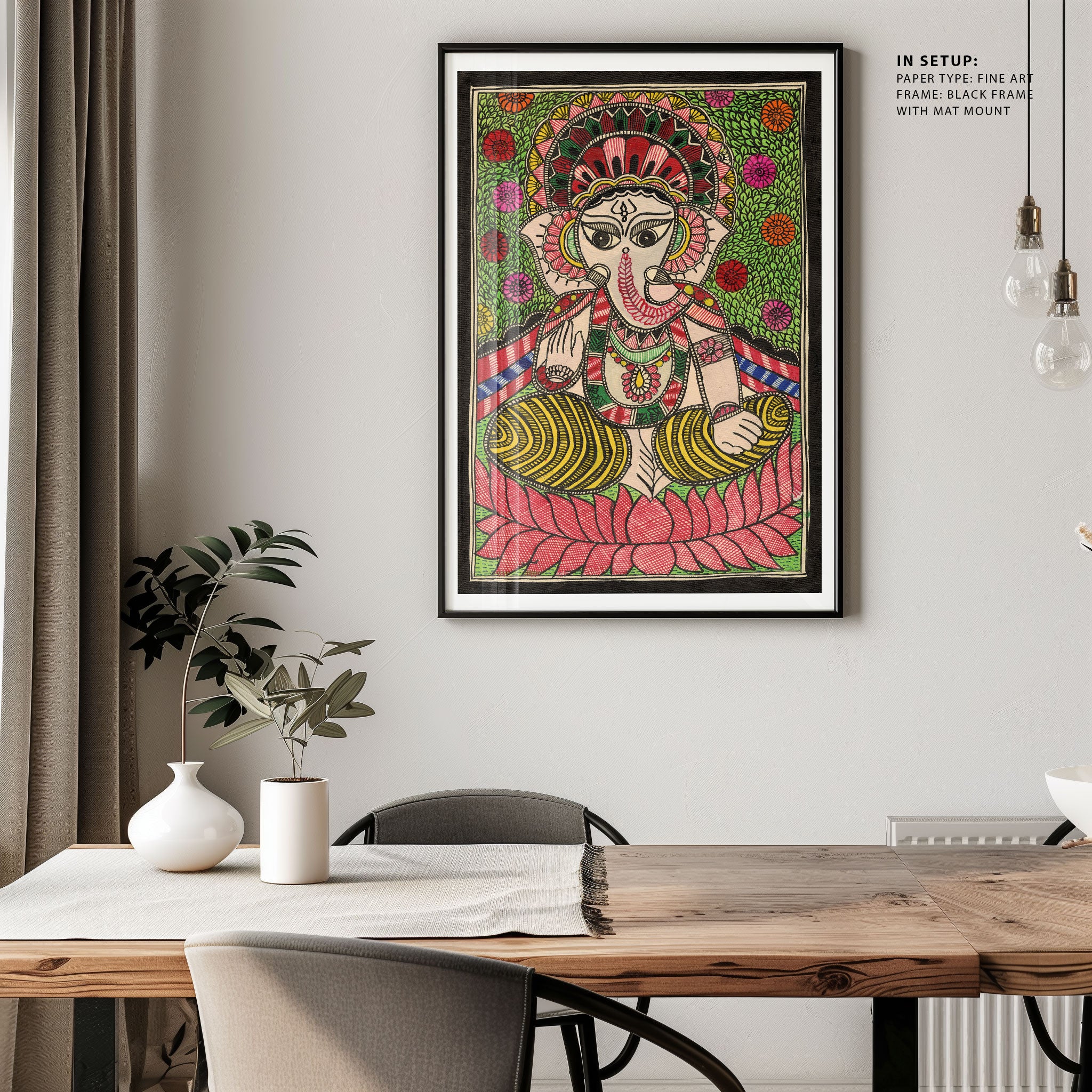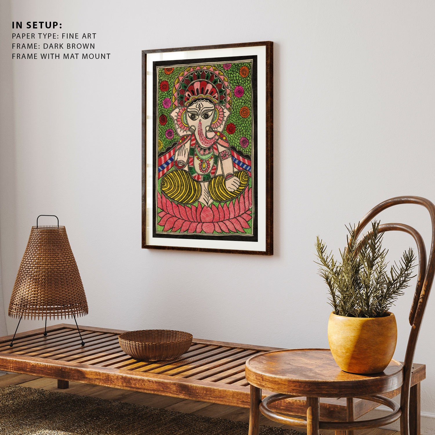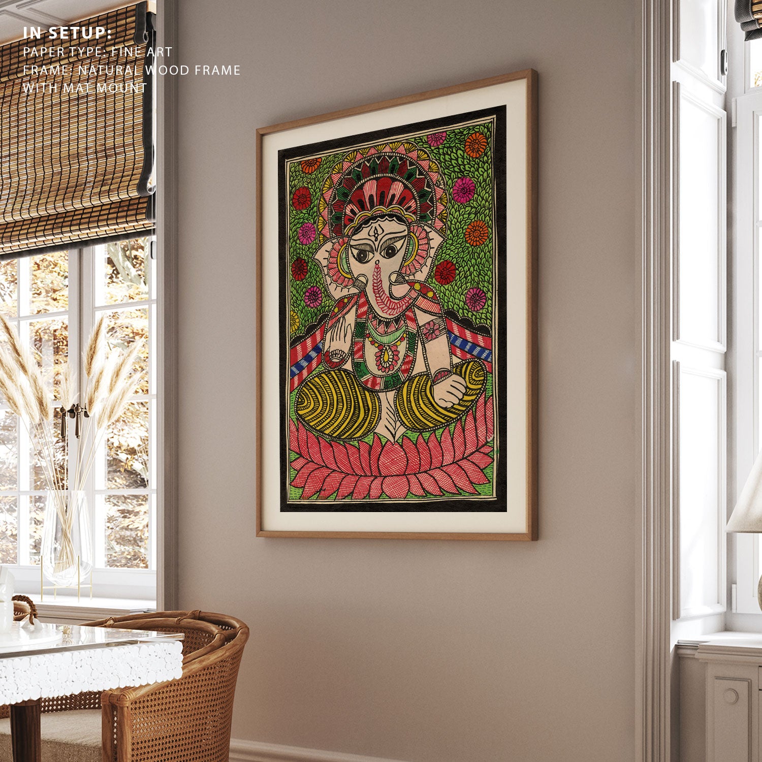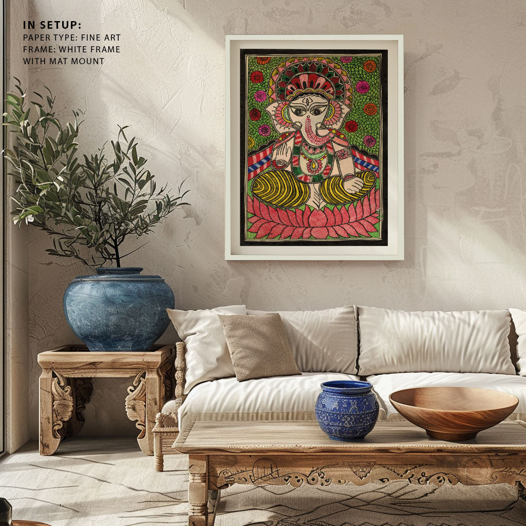 Madhubani Art Colorful Ganesha from the Madhubani Paintings Collection is produced on Premium Museum Grade Canvas and Hahnemuhle Fine Art Media. This beautiful Madhubani Painting Art Print product is made with a matte finish and premium quality with vibrant colors. These Madhubani Miniature Paintings Art Prints are produced with the most extreme shading precision and using the most advanced giclee printing technique in the world. We use the same standard that the various museums and art galleries use across the globe to recreate the Madhubani Miniature Paintings Art Prints. These Madhubani Paintings are perfect for you if you're a Madhubani or Indian Culture Lover or if you want to add a Traditional Look to your space. The vibrancy of colors and the unique detailing of every Madhubani Painting Art Print makes them the best in so many ways. This Madhubani Art Print will add charm to any room in your home. These Madhubani Painting Art Prints can be the perfect gift to your friends, colleagues, or family as they sync in very well in your Bedroom, living room, lobby, Balcony, Bathroom, etc.