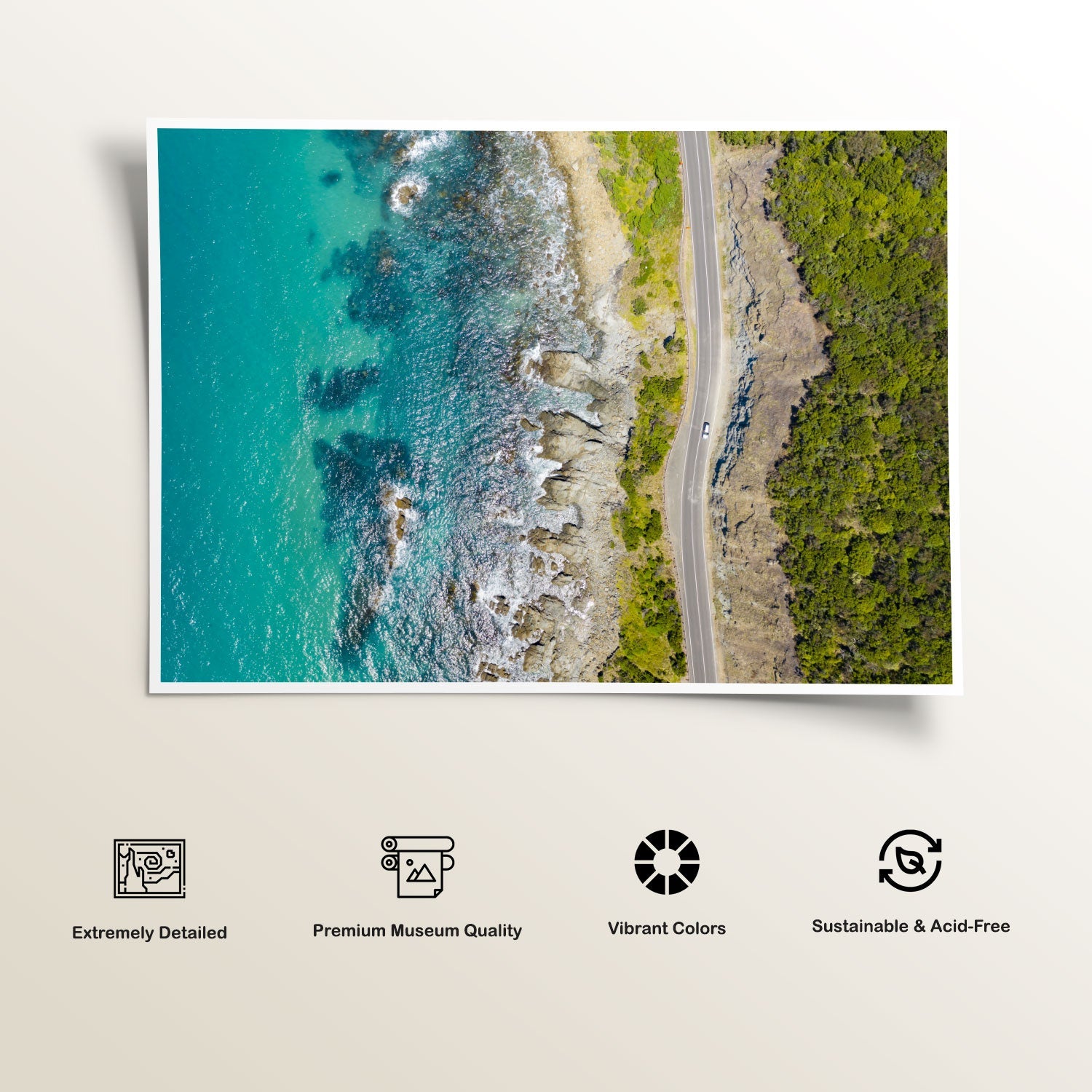 Ocean Road Austrailia from the Beach Art Painting and Seascape Print Collection is produced on Premium Museum Grade Canvas and Hahnemuhle Fine Art Media. This product is made with matte finish and premium quality with vibrant colors. These Beach Painting and Seascape Art Prints are produced with the most extreme shading precision and using the most advanced giclee printing technique in the world. We use the same standard that the various museums and art galleries use across the globe to recreate the Beach Painting & Seascape Art Prints. These Beach Art Painting Prints are perfect for you if you're an Art Lover or if you want to add a Soothing, Beachy, Subtle or Calm Look to your space. The vibrancy of colors and the unique detailing of every Beach Art Painting Print makes them the best in so many ways. This Beach Painting Print will add charm to any room in your home. This Beautiful Beach Seascape Artwork can be the perfect gift to your friends, colleagues or family as they sync in very well in your Bedroom, living room, lobby, Balcony, Bathroom etc.