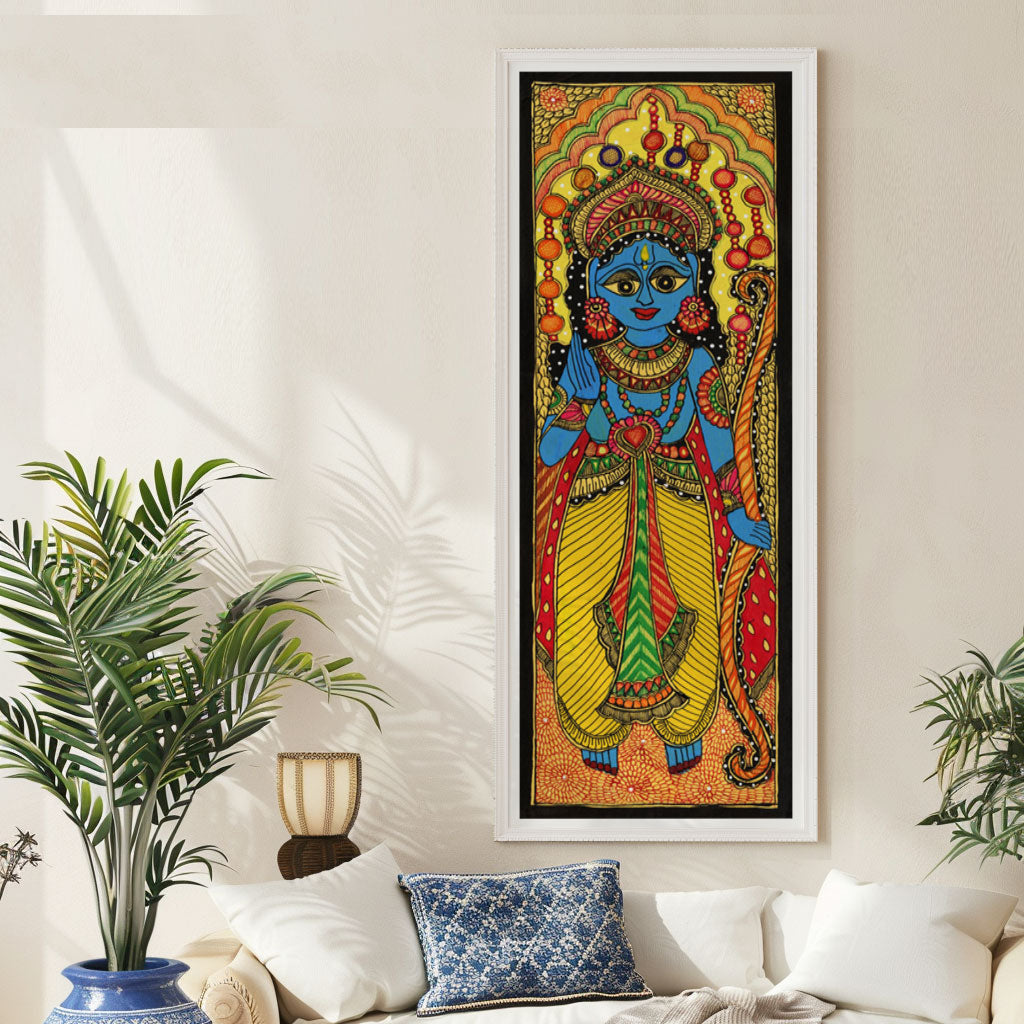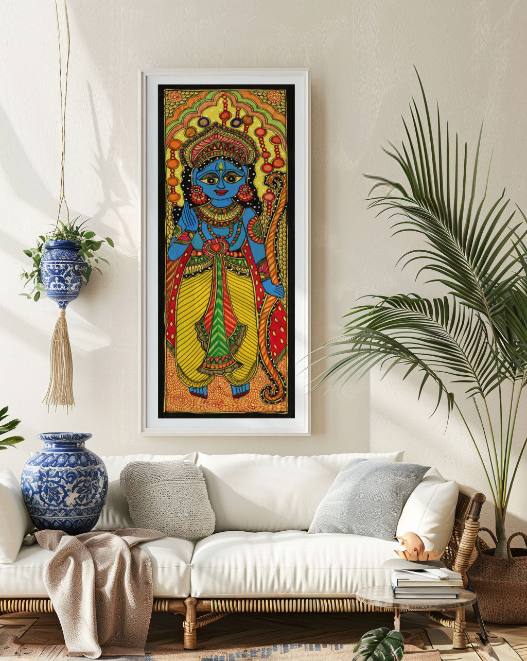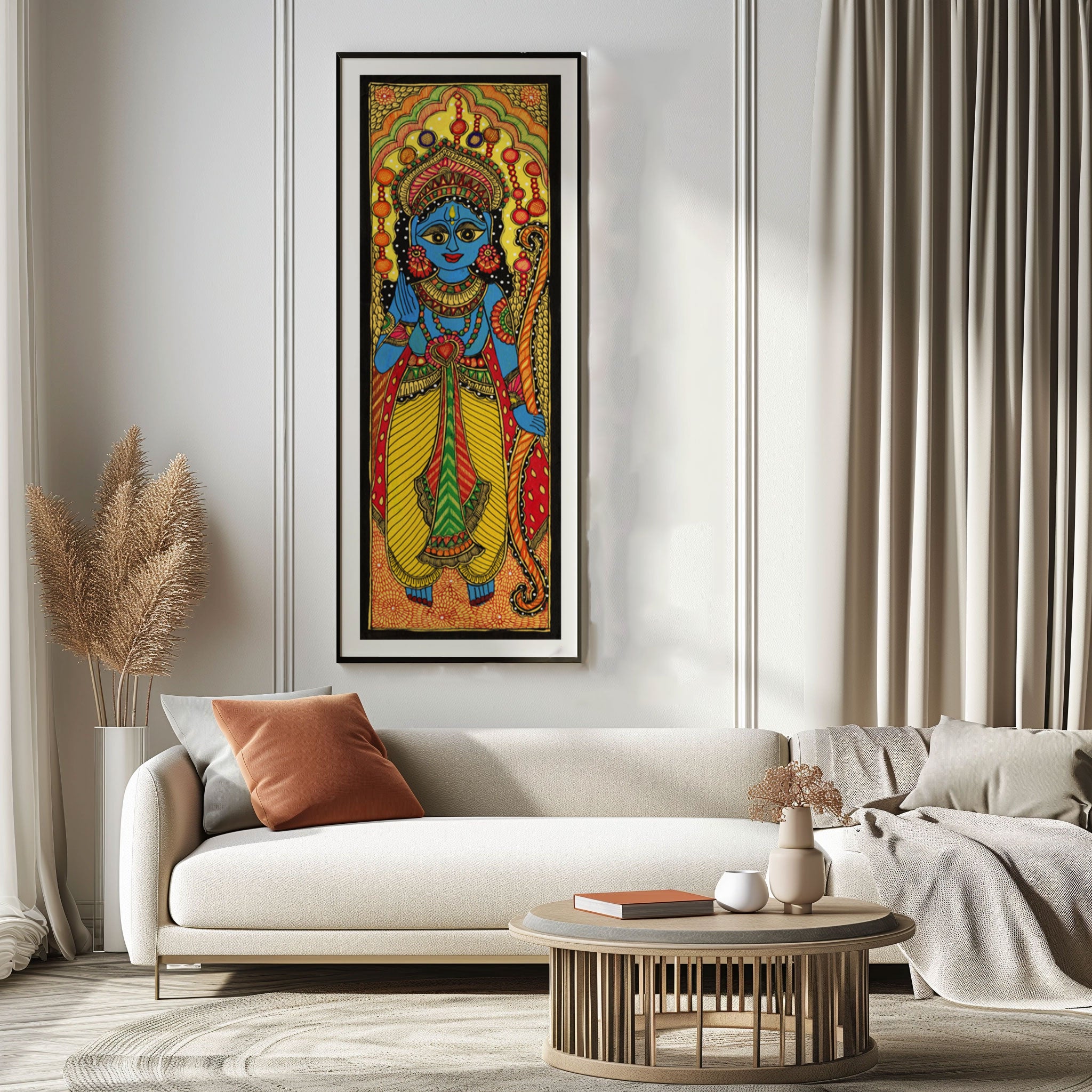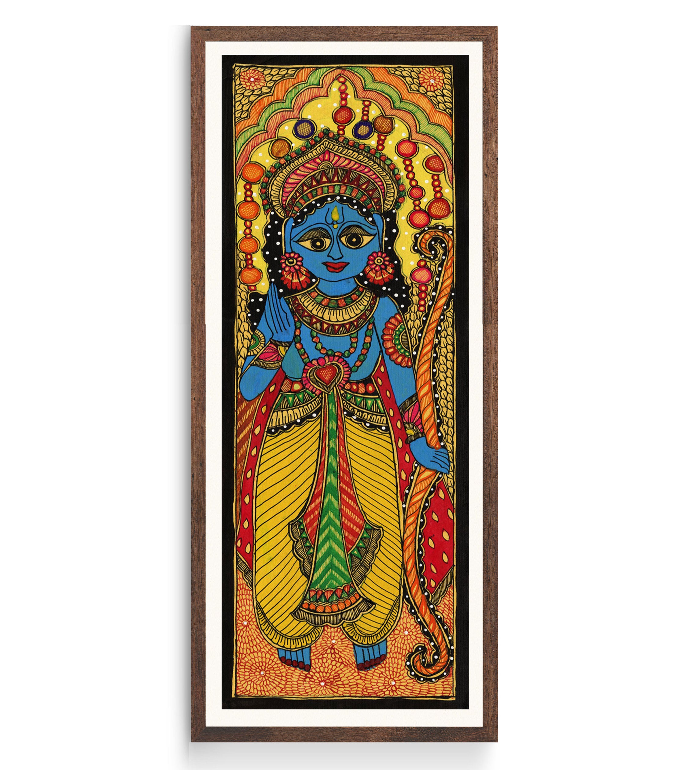 Shree Ram Madhubani Art from the Madhubani Paintings Collection is produced on Premium Museum Grade Canvas and Hahnemuhle Fine Art Media. This beautiful Madhubani Painting Art Print product is made with a matte finish and premium quality with vibrant colors. These Madhubani Miniature Paintings Art Prints are produced with the most extreme shading precision and using the most advanced giclee printing technique in the world. We use the same standard that the various museums and art galleries use across the globe to recreate the Madhubani Miniature Paintings Art Prints. These Madhubani Paintings are perfect for you if you're a Madhubani or Indian Culture Lover or if you want to add a Traditional Look to your space. The vibrancy of colors and the unique detailing of every Madhubani Painting Art Print makes them the best in so many ways. This Madhubani Art Print will add charm to any room in your home. These Madhubani Painting Art Prints can be the perfect gift to your friends, colleagues, or family as they sync in very well in your Bedroom, living room, lobby, Balcony, Bathroom, etc.