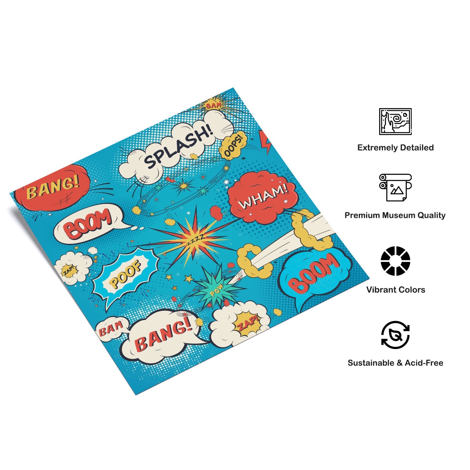 Splash from the Pop Art Paintings Collection is produced on Premium Museum Grade Canvas and Hahnemuhle Fine Art Media. This product is made with matte finish and premium quality with vibrant colors. These Pop Art Paintings Prints are produced with the most extreme shading precision and using the most advanced giclee printing technique in the world. We use the same standard that the various museums and art galleries use across the globe to recreate the Pop Art Paintings Art Prints. These Pop Art Paintings are perfect for you if you're an Art Lover or if you want to add a Quirky, Contemporary or Cool Look to your space. The vibrancy of colors and the unique detailing of every Pop Art Painting Print makes them the best in so many ways. This Pop Art Painting Print will add quirk to any room in your home. This Pop Art Painting Artwork can be the perfect gift to your friends, colleagues or family as they sync in very well in your Bedroom, living room, lobby, Balcony, Bathroom etc.
