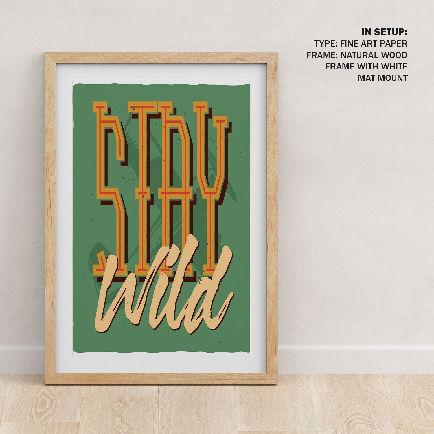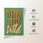 Stay Wild from the Motivational Posters Collection is produced on Premium Museum Grade Poster and Hahnemuhle Fine Art Media. This amazing Motivational Poster Print product is made with matte finish and premium quality with vibrant colors. These Motivational Posters Art Prints are produced with the most extreme shading precision and using the most advanced giclee printing technique in the world. We use the same standard that the various museums and art galleries use across the globe to recreate the Motivational Posters Paintings Art Prints. These Motivational Posters Paintings are perfect for you if you're a Motivational Posters Lover or if you want to add a Vintage or Quirky Look to your space. The vibrancy of colors and the unique detailing of every Motivational Poster Print makes them the best in so many ways. This Motivational Poster Print will add charm to any room in your home. This Inspirational and Motivational Poster can be the perfect gift to your friends, colleagues or family as they sync in very well in your Bedroom, living room, lobby, Balcony, Bathroom etc.
